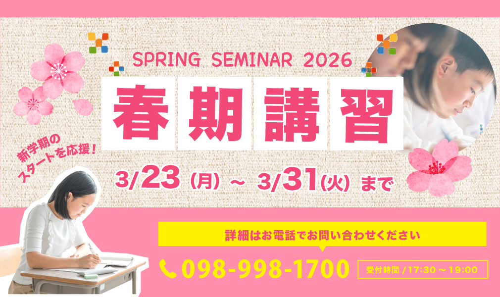2025の春期講習は終了いたしました。3/24(月)〜3/28(金)志学塾東風平校で『無料春期講習』を開講します。